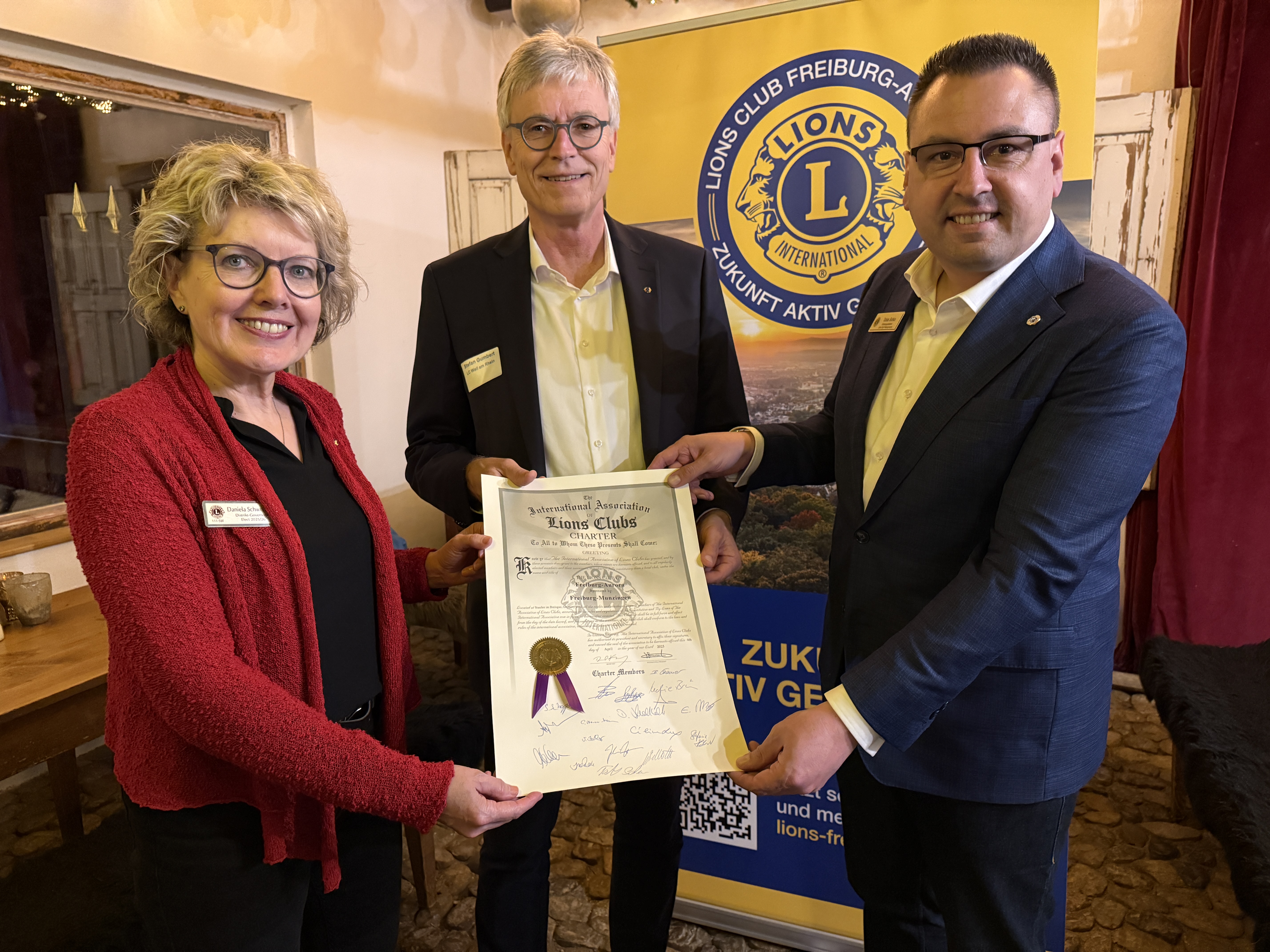 Am 28.05.2025 war es soweit - wir wurden als Lions Club Freiburg-Aurora offiziell gechartert, also in die 1,4 Mio Mitglieder umfassende Organisation von Lions International aufgenommen. Zu Gast waren auch Vertreter anderer Lions Clubs in der Region, vom Distrikt Süd-West und auch von der Stadt Freiburg.
