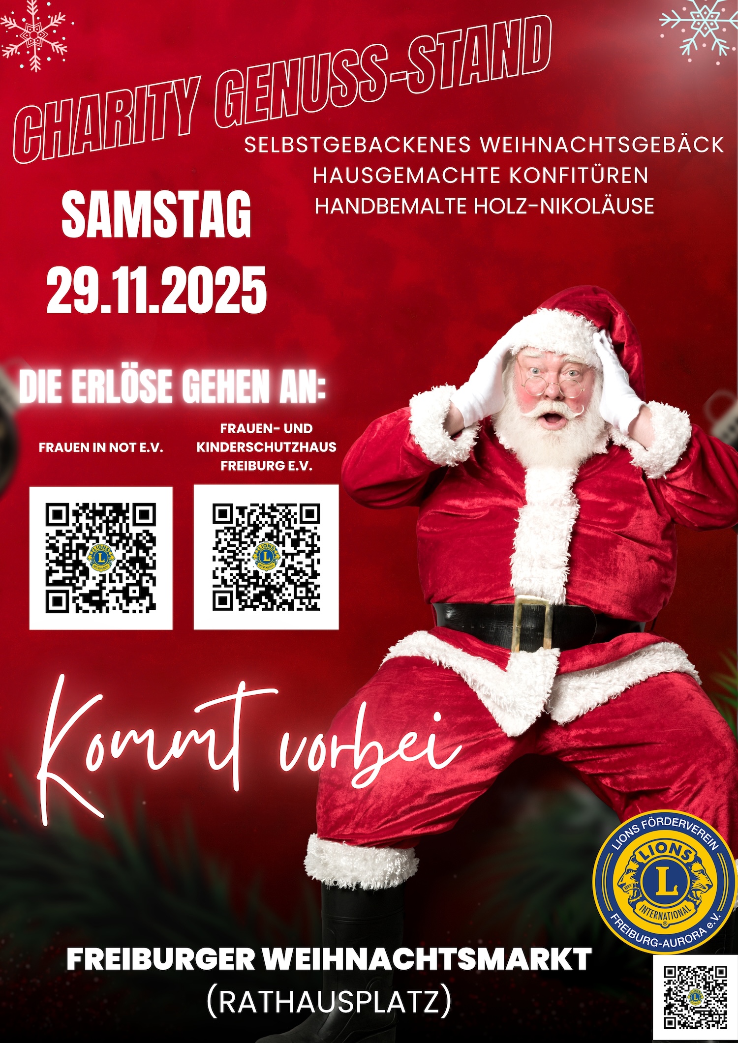 Beim diesjährigen Charity Genusstand auf dem Freiburger Weihnachtsmarkt am 29.11.2025 unterstützen wir zwei Organisationen, die uns am Herzen liegen und die unsere Spenden für ihre wertvolle Arbeit benötigen.